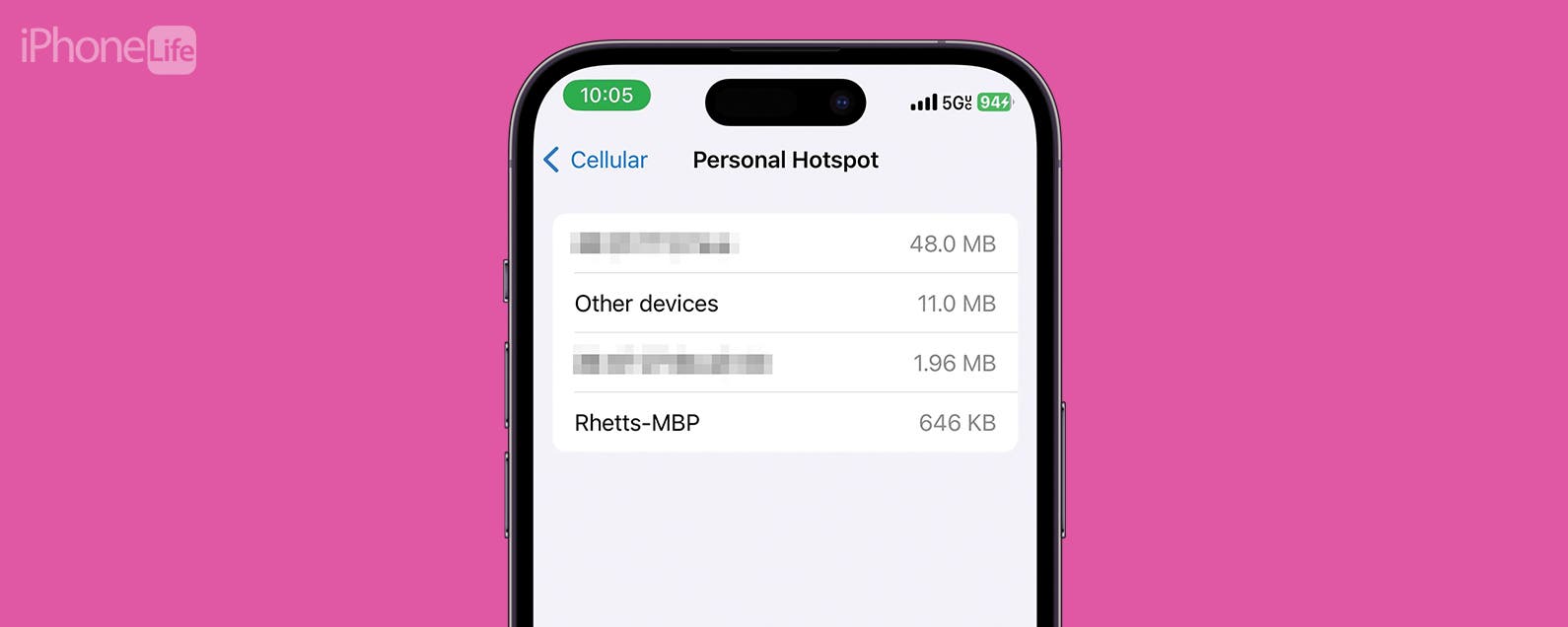 When others are using your hotspot, you won’t be able to see their connections in real-time. However, you can see which devices have connected to your hotspot in the past. For more iPhone tips and tricks, be sure to check out our free Tip of the Day newsletter. Now, here’s how to see and remove people from your iPhone’s personal hotspot: